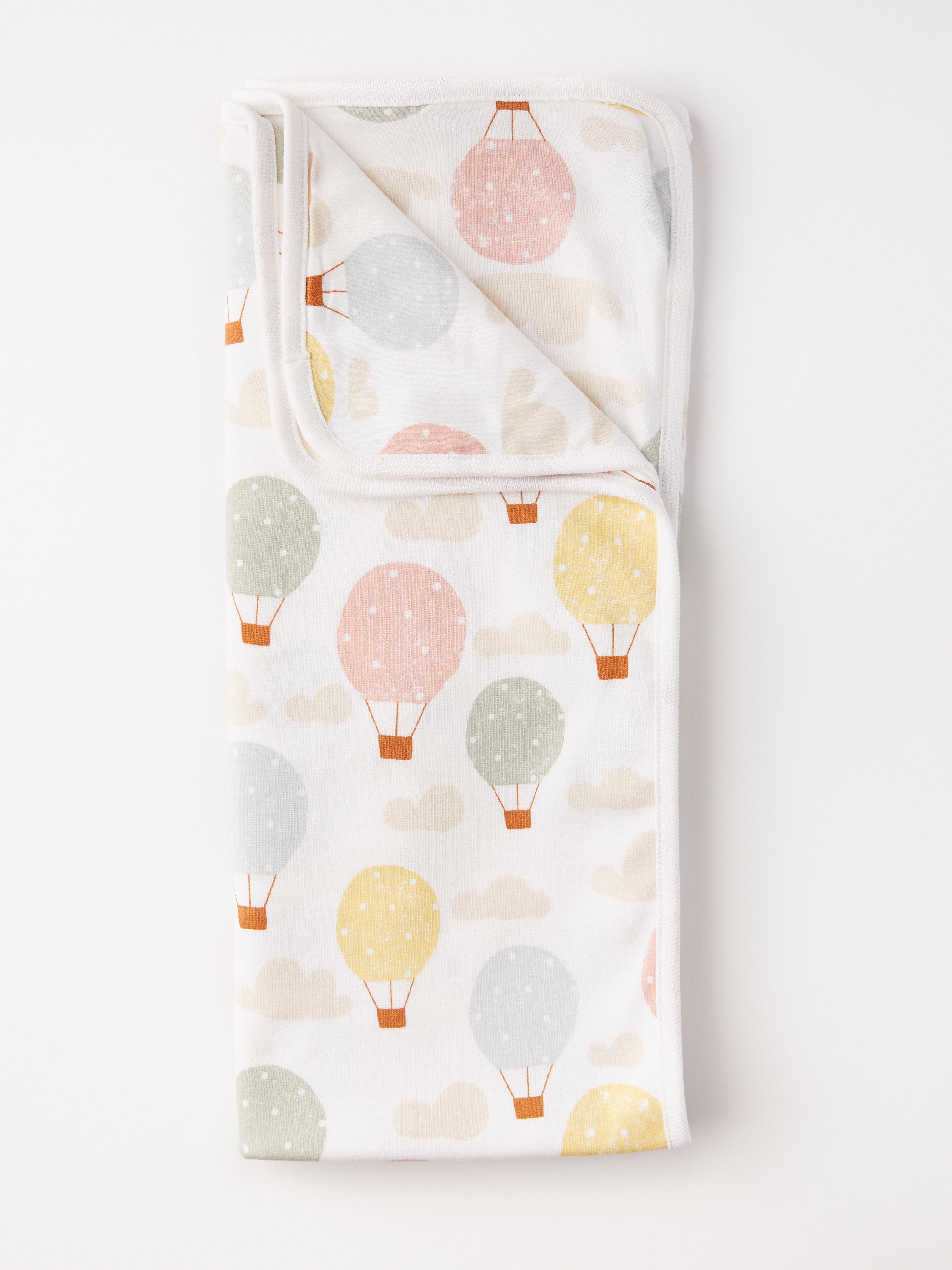Hot Air Balloon Baby Blanket: Gymboree hot air balloons baby blanket white pink clouds 2 ply security lovey.